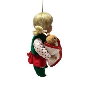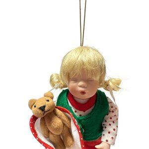 Vintage Collectible Blonde Girl Christmas Ornament Holding Teddy Bear