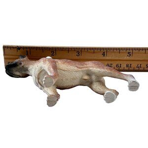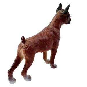 This vintage collectible figurine features a detailed boxer dog, crafted from durable plastic. Ideal for dog lovers and collectors alike, this piece adds charm to any space. Made in China, it measures 3.5 inches in height and 5.25 inches in length. In excellent pre-owned condition.