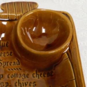 Vintage Collectible Calif USA Ceramic Chip Dip Platter & Blue Cheese Spread Recipe