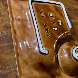 Vintage Collectible Calif USA Ceramic Chip Dip Platter & Blue Cheese Recipe