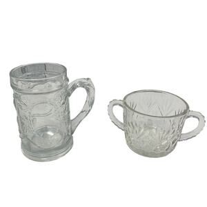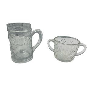 Vintage Collectible Clear Cut Glass Large Single Handle Mug Small Double Cup