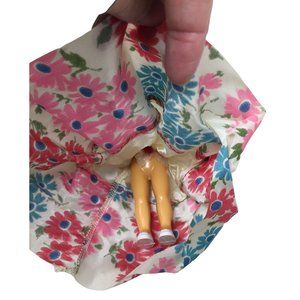 Vintage Collectible Doll With Blonde Hair wearing floral printed dress/red bow