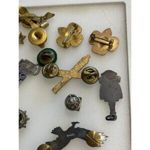 A diverse collection of vintage pins and fobs, featuring military insignias, union emblems, achievement awards, and figural designs. This assortment offers a unique blend of history and charm, perfect for collectors or as meaningful gifts. Each piece tells a story, adding timeless appeal to your collection.