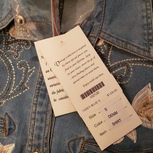 Vintage Collection Cowgirl Denim Button Down Shirt. Handwoven embroidery and beadwork with mother of pearl buttons. Brand NEW WITH TAGS. Stored in a smoke-free/covid-free home.