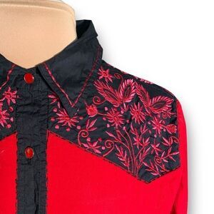 Vintage Collection Red Black Dark Floral Embroidered Long Sleeve Western Shirt