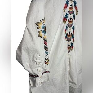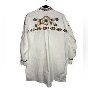 Vintage Collection Western Embroidered Oversized Button Front Cotton Blouse Med