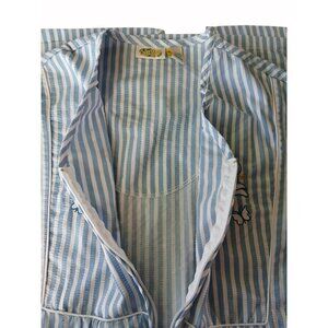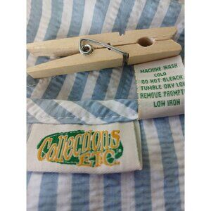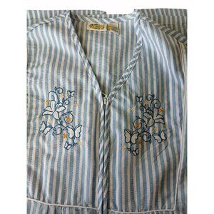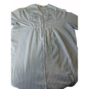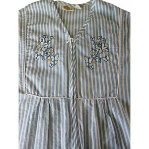Vintage Collections Blue White Striped Seersucker House Dress Robe Size XXXL 3Xl