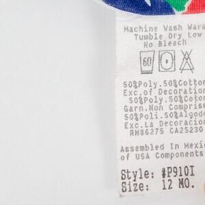 Size: Infant 12 months, approx. measurements are below and in photos. Compare to a favorite top for best sizing.