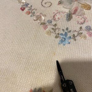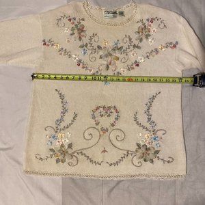Vintage Collen's Collectables Women's Floral Knit Sweater W/ Shoulder Pads - L