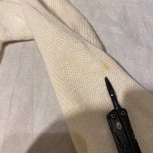 the sweater is in great clean condition has some stain flaws check pictures for details and measurements