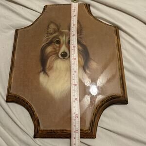 The Vintage Collie Dog Etching Wood Wall Plaque Art by Robert K. Reynolds is a charming decorative collectible perfect for dog lovers and art enthusiasts alike. The intricate wood etching features a collie dog design, making it a unique and sentimental addition to any home decor. Suitable for hanging on a wall, this plaque brings character and warmth to any space. Created by the reputable brand Reynolds, this piece is sure to be a cherished item for years to come.