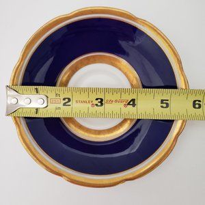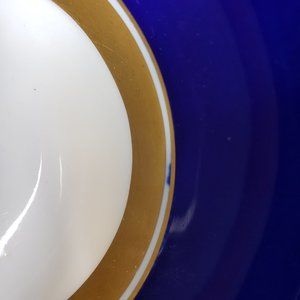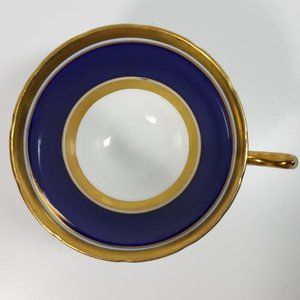 This beautiful English bone china cup & saucer by Collingwoods (est. 1796) dates to the 1950s. Fluted edges on saucer, gold trim on both pieces. Good vintage condition, no cracks, chips, or repairs. The rims of both pieces show very slight wear but this is a highly useable set. Tiny mfr “bleed” of cobalt into the white strip in cup (last photo). Hand wash only.
