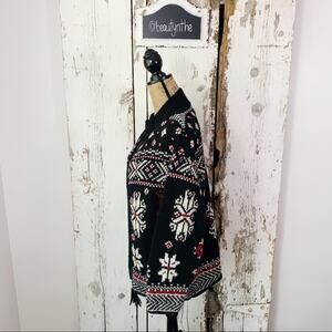 Nordic fair isle snowflake print. Vintage sweater from Collins & Pyne. Size medium. In great condition. Tassel zip pull. As you can see from the inside the sweater is hand woven so you see the threads this is not a flaw. 100% wool. Some light pilling as is natural with 100% wool fibers.
