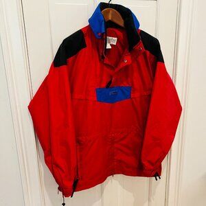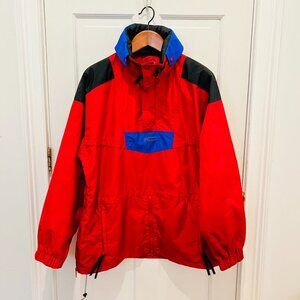 Vintage Colombia Pullover Anorak Jacket Coat Men’s L Red Blue Kangaroo Pocket
