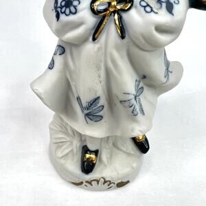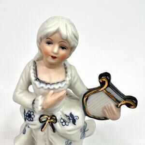 Vintage painted ceramic figurine of a colonial harp player. Some minor wear from age but overall in great condition with no chips or cracks!