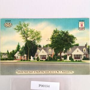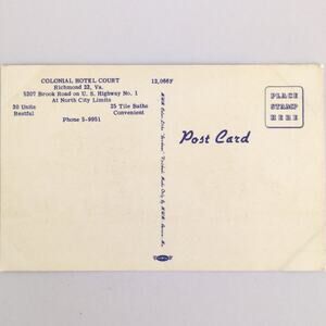 Vintage Colonial Hotel Court Richmond Virginia Linen Postcard Unused 1940s
