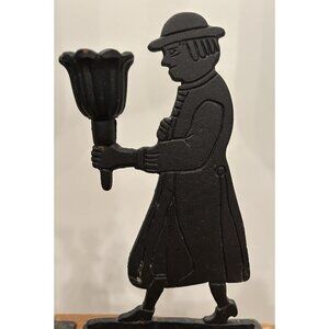 Vintage Colonial Man Woman Cast Metal Taper Candle Holders 9” Black