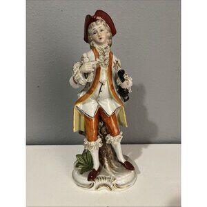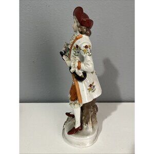 Vintage Colonial Style Porcelain Figurine Hand Painted Man Violin Dresden Lace