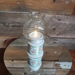 Vintage Ceramic Colonial Votive Candle Holder Holds votive size candles. 2 1/2" wide x 3" tall. Vintage Colonial Candle. Comes with glass globe & new battery operated votive candle.