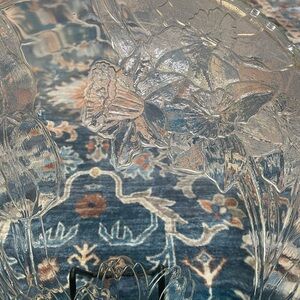 Beautiful vintage handcrafted, crystal round platter featuring gorgeous, etched, tulips, and daffodils