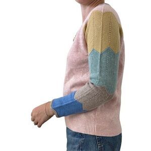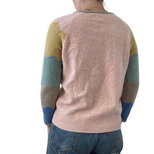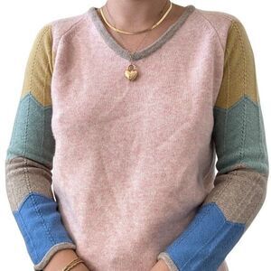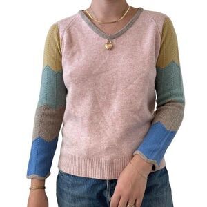 Vintage Color Block Pastel Lambswool Striped V Neck Soft Preppy Sweater Sz M