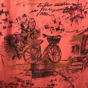 Vintage Color Me Cotton Dress Sleeveless Drape Botanical Bicycle Coral Medium