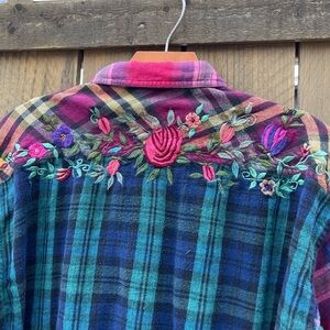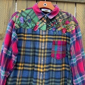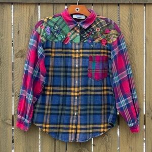 * Vintage Colorblock Rainbow Flannel Embroidered Back Women’s Medium