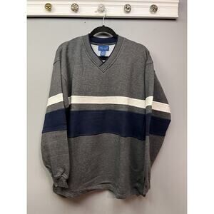 Vintage Colorblock Striped Crewneck Sweatshirt Towncraft Mens Medium Gray Blue