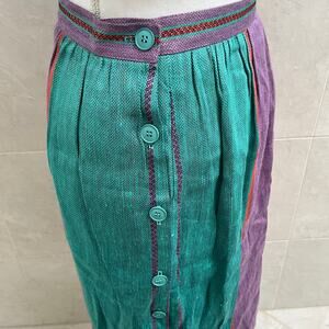 Vintage Colorblock Stripes Linen Skirt by Prophecy - Large - mid to long length