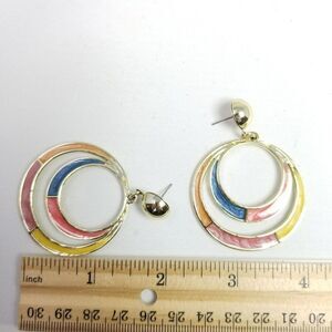 Vintage Colorful Enamel Dangle Hoop Earrings, Stud, Door Knocker Style, Estate