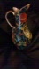 Enhance your home decor with this vibrant floral ceramic pitcher. Hand painted with pure 10k gold oil. Featuring a stunning blend of red,gold, yellow, and green, this piece adds a touch of elegance to any room.