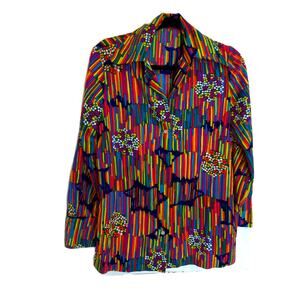 Vintage Colorful Neon Abstract Graphic Dagger Collar Psychedelic Top Blouse READ