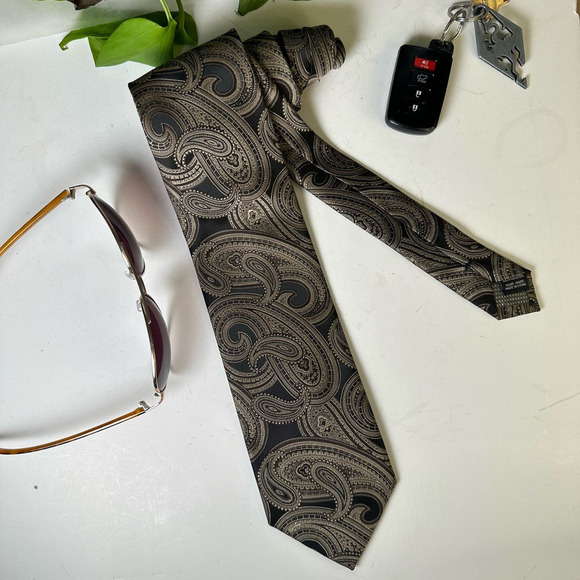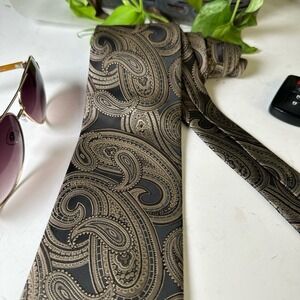 Vintage Colours Alexander Julian Black + Tan Paisley Tie Polyester 3.5" Wide
