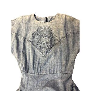 Vintage Colours Blue Denim Dress Womens 12 With Embroidered Detail & Back Zipper Unique Heavy 80s 90s