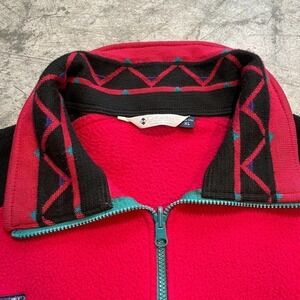 Vintage Columbia Aztec Collar Fleece Sweatshirt Jacket Pink Black Turquoise XL