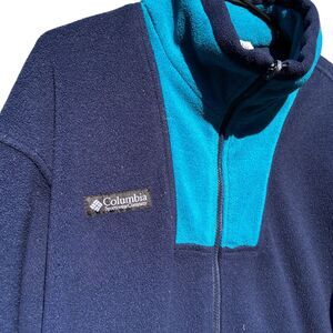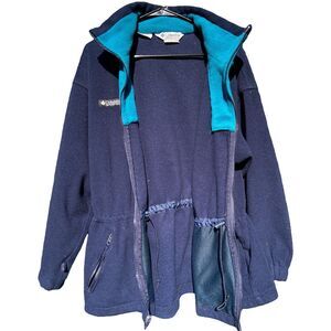 Vintage Columbia Fleece Blue Real Drawstring Waist Full-Zip Sweater Jacket L