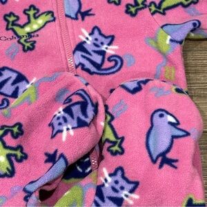 Vintage Columbia Fleece Bunting 6-12 Months Pink Animals Soft Warm Snowsuit