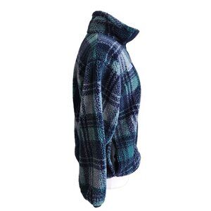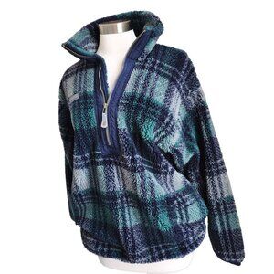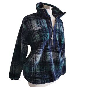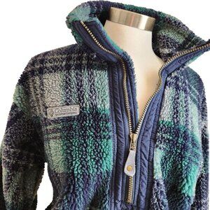 Vintage Columbia Fleece Made in USA Sz Small Plaid Green Blue 1/4 zip