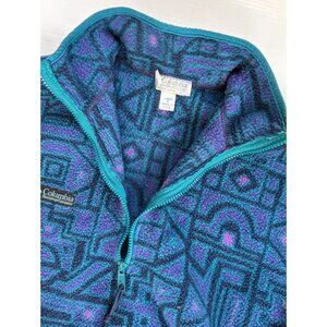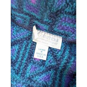 Vintage Columbia Jacket Womens Medium USA Made Geometric 1/2 Zip Fleece Blue