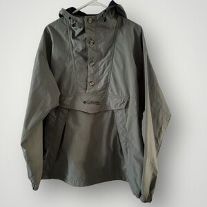 Vintage Columbia Olive Green Pullover Hooded Windbreaker Jacket Mens Size L
