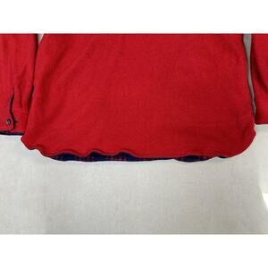 This is a great reversible pull over 1/4 zip pullover. Solid red on one side and a great blue and red plaid on the other side.