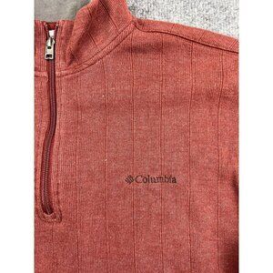 Vintage Columbia Sweater Men's XL Red 1/4 Zip Pullover Mock Neck Cotton