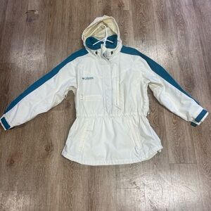 Vintage Columbia White and Teal Hooded Jacket Size Medium