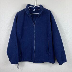 Fleece jacket can be worn by itself. Full zip with two zippered pockets and Columbia logo on the chest. Drawcords at waist.