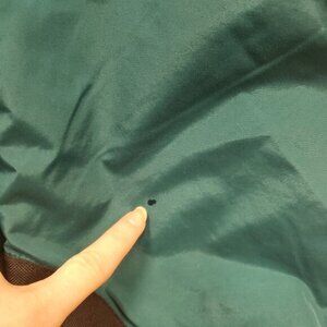 • Flaws: A few marks on back of snowsuit, a few holes on back, a few runs in fabric on chest