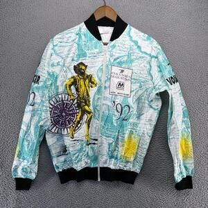 Vintage Columbus Marathon Jacket Mens Medium White Blue All Over New Balance 90s