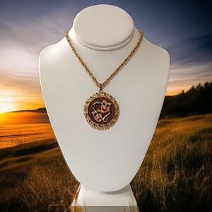 Vintage Comedy Tragedy Mask Necklace MCM Gold Tone Rhinestones Mardi Gras 70s
