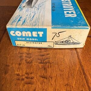 The Vintage Comet Model Hobbycraft Inc. Destroyer Kit No. J6 is a rare and collectible wood model kit from the 1940s. This unassembled kit includes a beige-colored ship model with a skill level of 4 – Advanced. Made in the United States by Comet Brand, this vintage model kit is a perfect addition to any model enthusiast's collection.