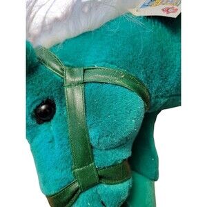 Great used condition for age. Vintage Animal Alley Plush Horse. Emerald Green with silver sparkles throughout. White mane and tail. Made by Commonwealth for Toys R' Us.