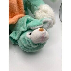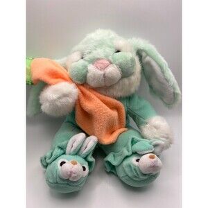 So adorable. 1993 Mint green bunny holding carrot blankie and wearing bunny slippers.